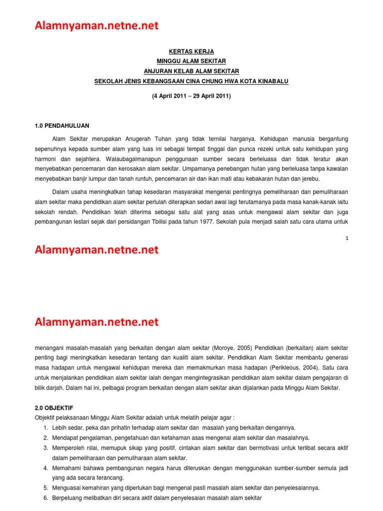 Contoh Kertas Kerja Minggu Alam Sekitar